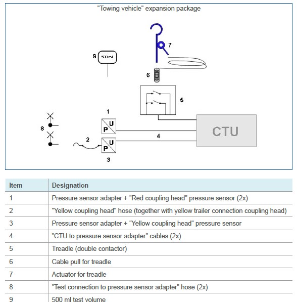 The "Towing vehicle" expansion package comprises components for performing pressure flow time records and measurements on the towing vehicle.