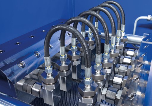 The bench PTM-700-S performs impulse test pressure of hydraulic components like flexible hoses and rigid pipes, fittings, valves, quick release couplings according to SAE J343, ISO 6803, ISO 6605 and ISO 18869 specifications.