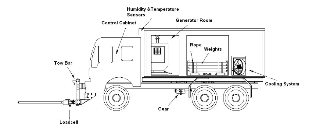 The tow truck of the test stand will be able to conveniently move the above load at a speed of 0.5-15 km/h. The movement will be transmitted to the ground by at two rubber wheels and a differential system. If necessary, load-bearing wheels will be added to withstand the load on the system.
